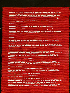 Le texte de la Loi sur les Indiens caviardé par du perlage, c’est percutant.